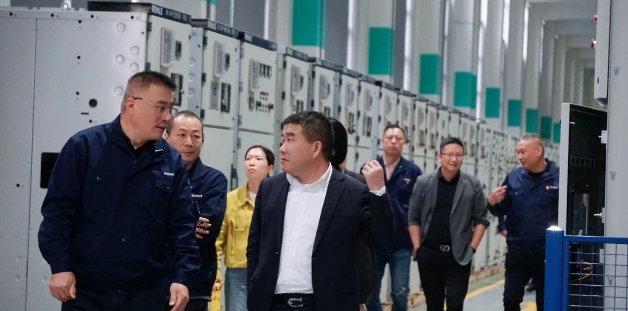 董事长陈国成陪同黄书记一行领导参观雷诺尔高低压车间、电子车间等,围绕雷诺尔的发展历程、文化、荣誉、科研成果等作汇报交流。