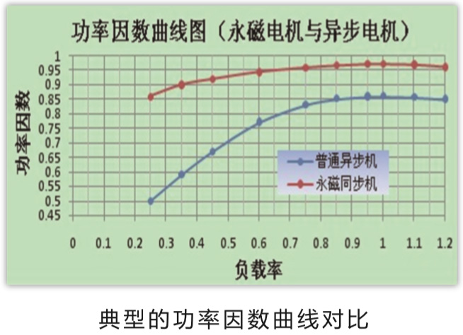 2) 功率因数高。永磁电机在正常运转时,转子转速和定子磁场转速一致,转子鼠笼条上没有电流,定子上感应电流减小,因此功率因数高。