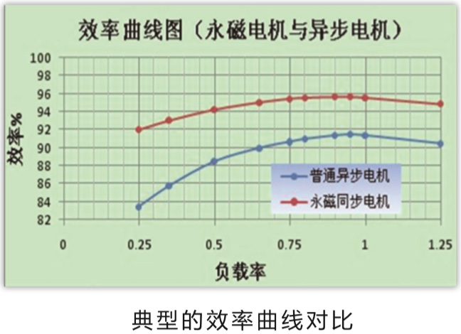 超高效永磁同步电动机转子由稀土永磁体提供励磁,转子不需要励磁电流。所以在电机运行时转子没有电阻损耗,定子减少电阻损耗,电机总损耗减少20%。其次,由于永磁电机的磁场由稀土永磁体产生,不需要定子增加无功励磁电流,可使的电机的功率因数大幅度提高,可达0.95-1,这样使得电机的定子绕圈中电流显著降低,从而提高电机的效率达2至6个百分点,达到并超过国际IE3-IE4标准,具有高效率、高功率因数、低运行电流、低温升、宽经济运行范围、高节电回报等特点。