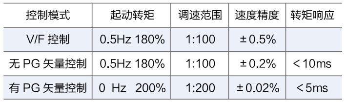 4) V/F控制模式下,高精度的电流限制控制,使得驱动器无论是快速加减速还是堵转,都不会出现过流报警,可靠的保护驱动器;矢量控制模式下,高精度的转矩限定控制,使得驱动器可以按用户工艺控制要求,输出强劲的转矩或柔和的转矩,可靠的保护机械设备。