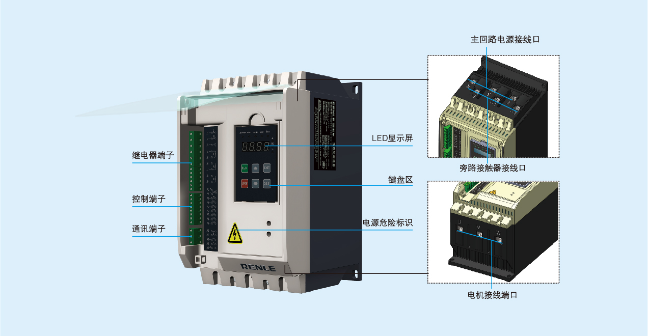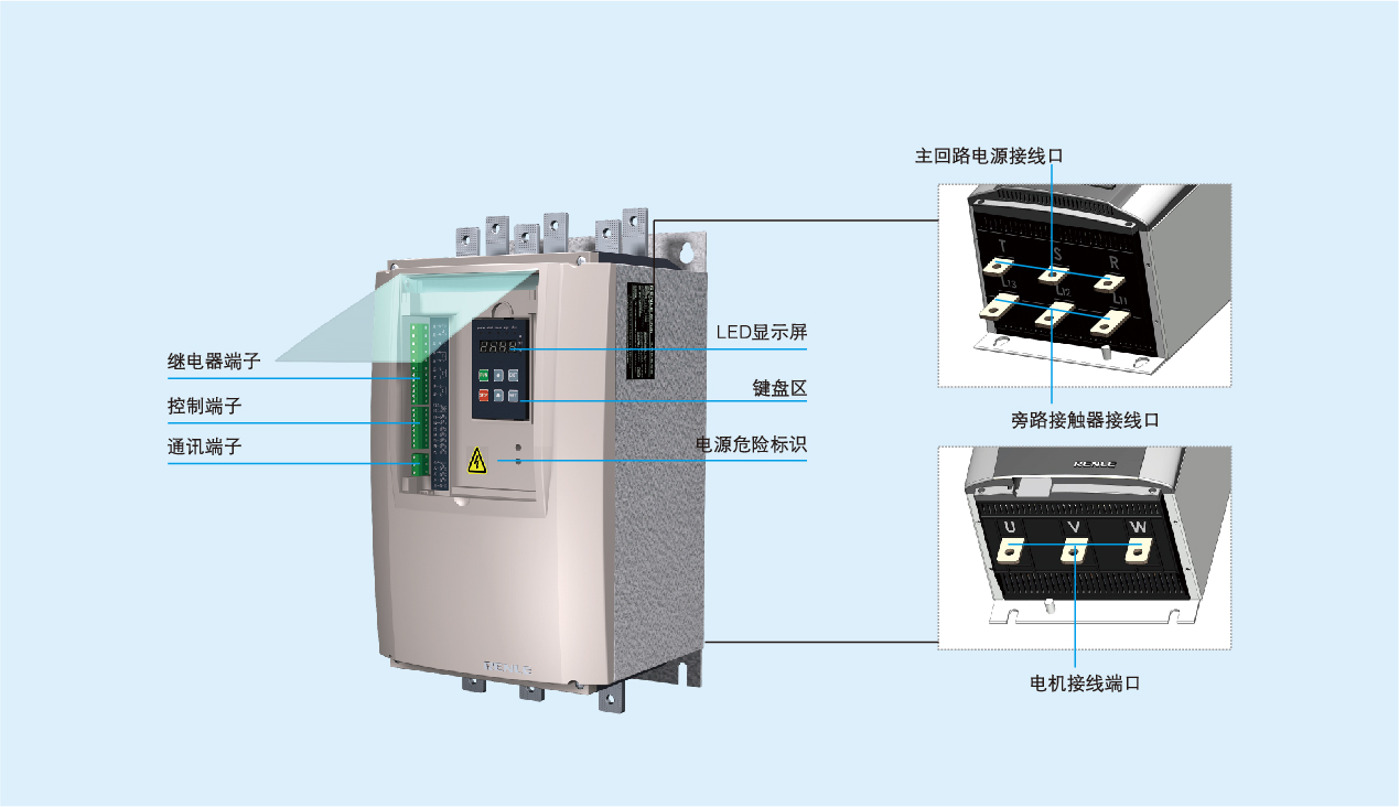 ○ 三种起动参数可选,方便一台电机软起动器启动不同功率的电机负载;